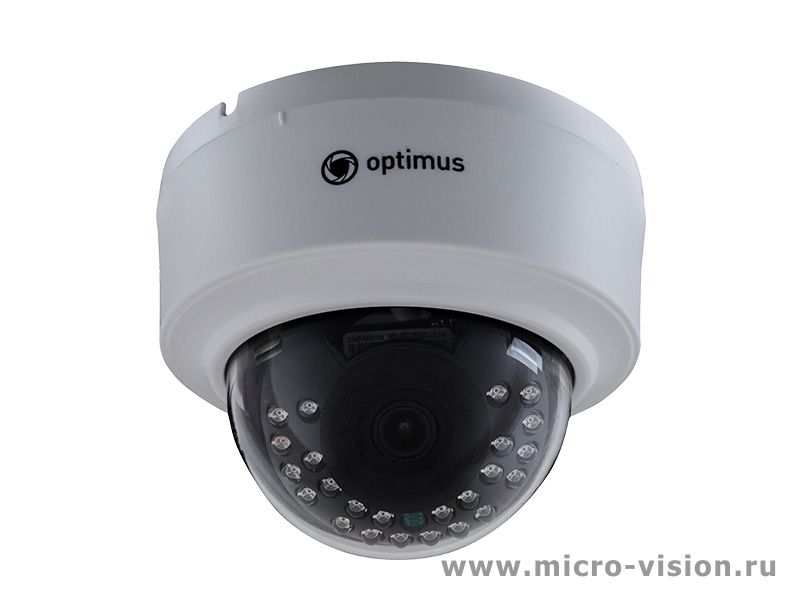 Купольная IP-видеокамера Optimus IP-E022.1(3.6)AP) создана на основе 1/2.9" матрицы Sony, разрешением 2.1 Мп (1920х1080).