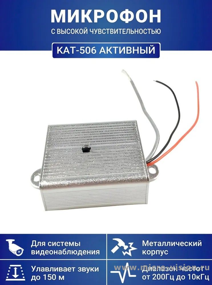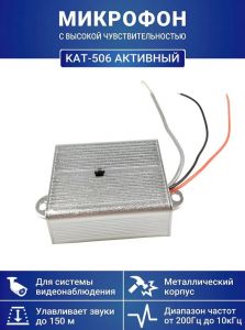 Микрофон активный KAT-506 с высокой чувствительностью, что позволяет ему улавливать звуки на расстоянии до 150 квадратных метров.