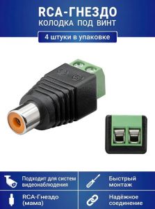 Разъем RCA-гнездо с клеммной колодкой под винт, для камер видеонаблюдения