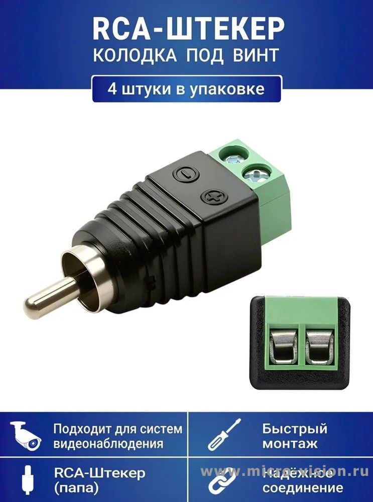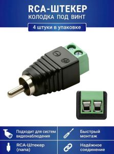 Разъем RCA-штекер с клеммной колодкой под винт, для камер видеонаблюдения