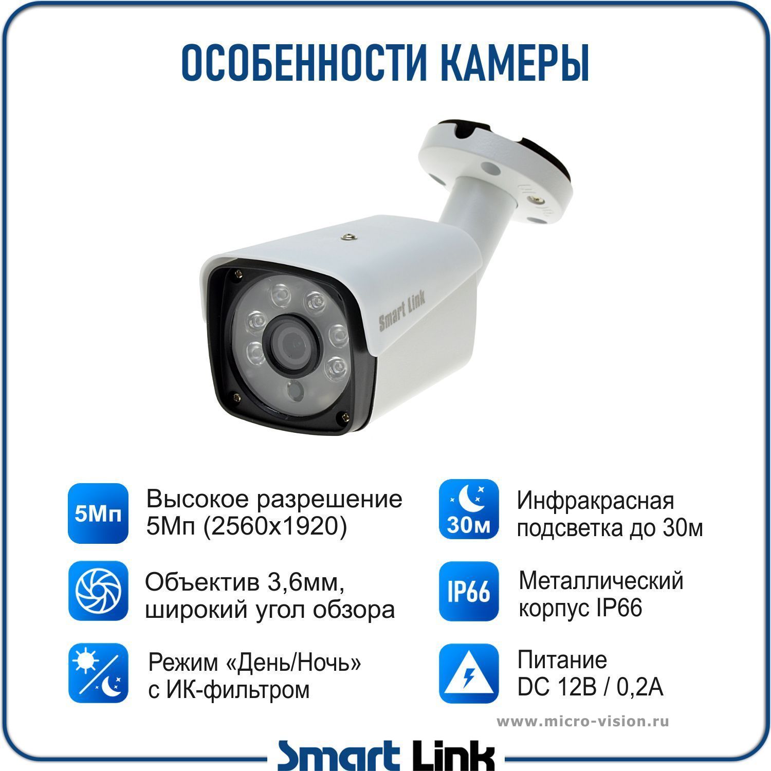 Уличная мультиформатная HD-камера видеонаблюдения 5Мп. Smart Link SL-H5073B